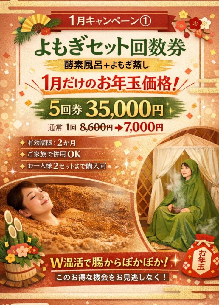よもぎ蒸しの温かさと、酵素風呂の発酵熱のW温活で